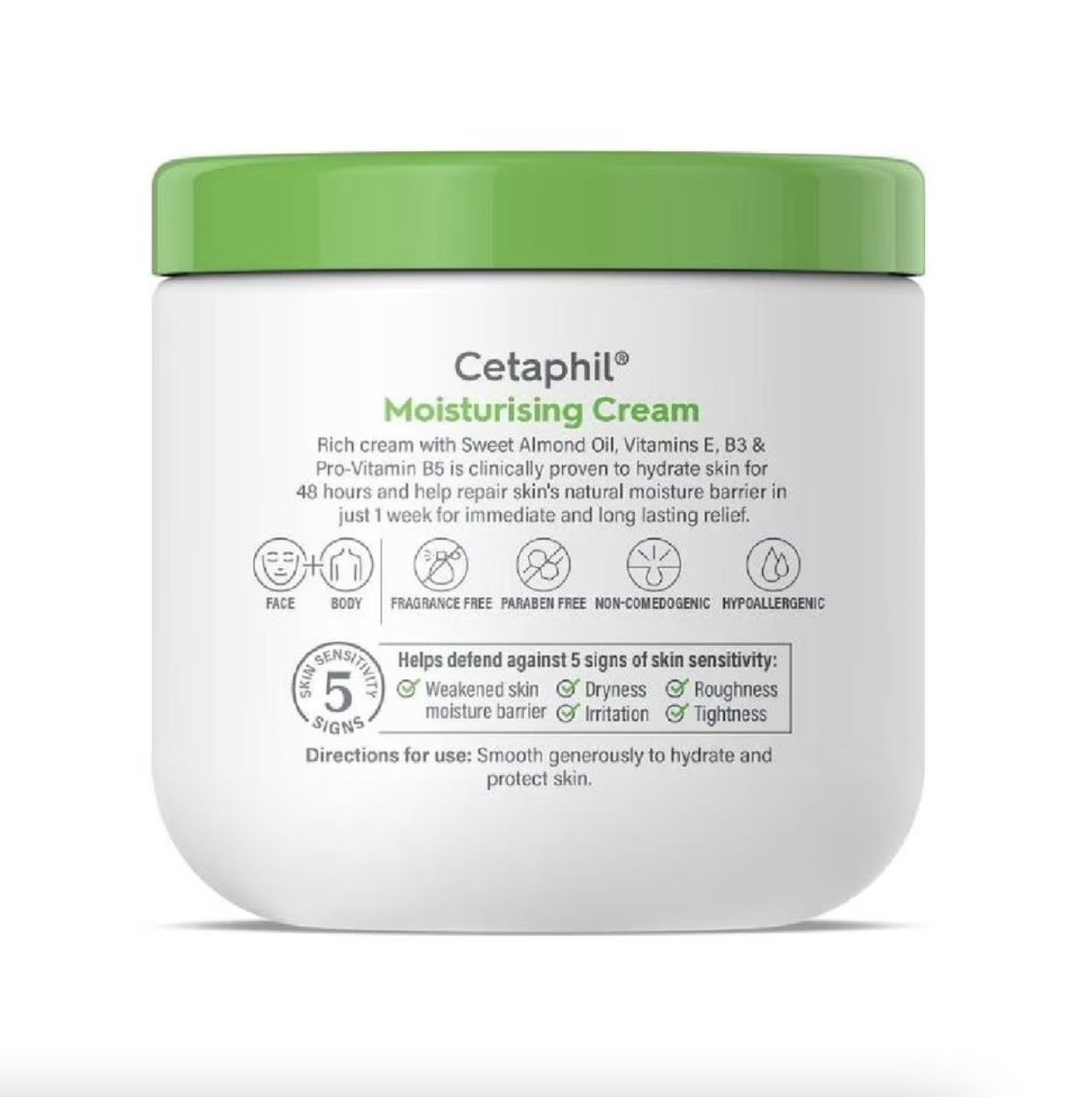 Cetaphil Moisturizing Cream is formulated with a new blend of key ingredients: hydrating glycerin, panthenol (pro-vitamin B5) to hydrate, soothe and preserve the skin barrier, and niacinamide (vitamin B3) to replenish the skin’s moisture and prevent moisture loss.